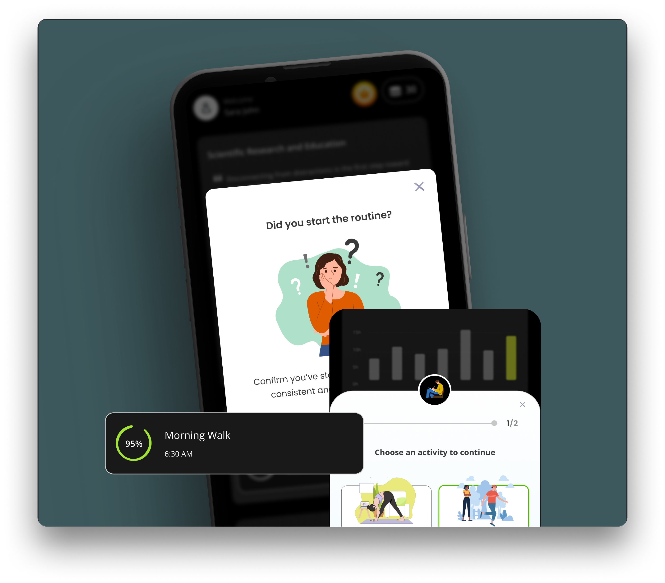 Users are rewarded with badges and milestones as they stay consistent with routines and complete goals. These achievements motivate users to continue building healthy habits and maintain their progress.
